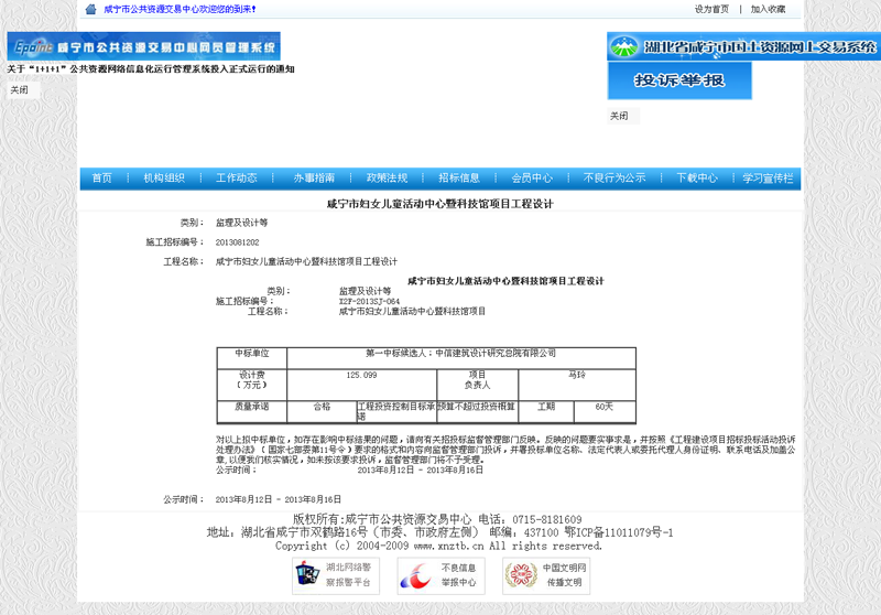 咸寧市婦女兒童活動中心暨科技館項目工程設(shè)計中標通知