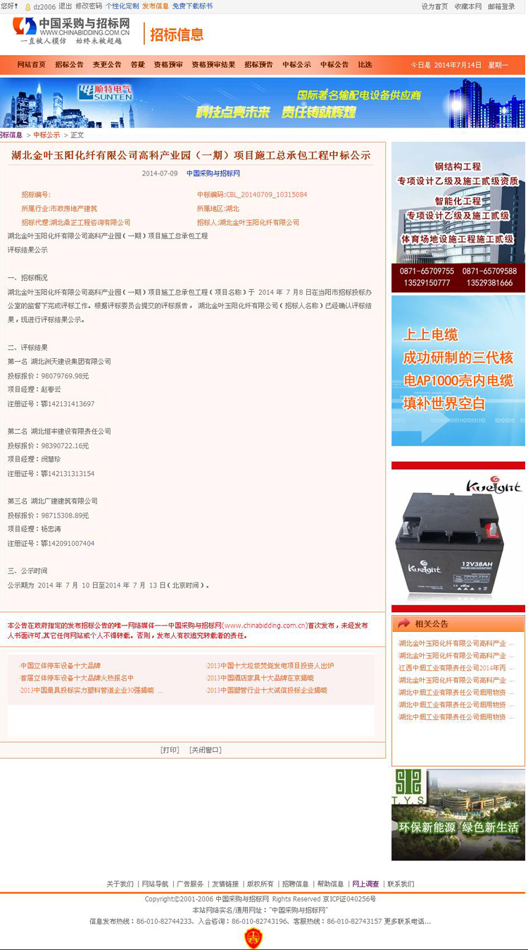 湖北金葉玉陽化纖有限公司高科產(chǎn)業(yè)園(一期)項目施工總承包工程