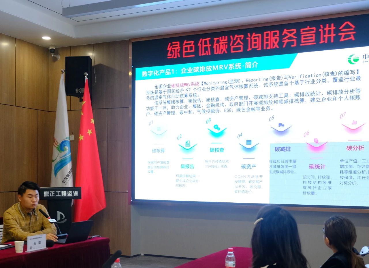 產業(yè)與空間規(guī)劃事業(yè)部吳琪,結合公司在工程領域的雙碳研究成果和大量工程實踐經驗,從政策背景、核心優(yōu)勢、業(yè)務內容三個方面,全面而細致地介紹了《鼎正綠色低碳咨詢服務產品矩陣》。