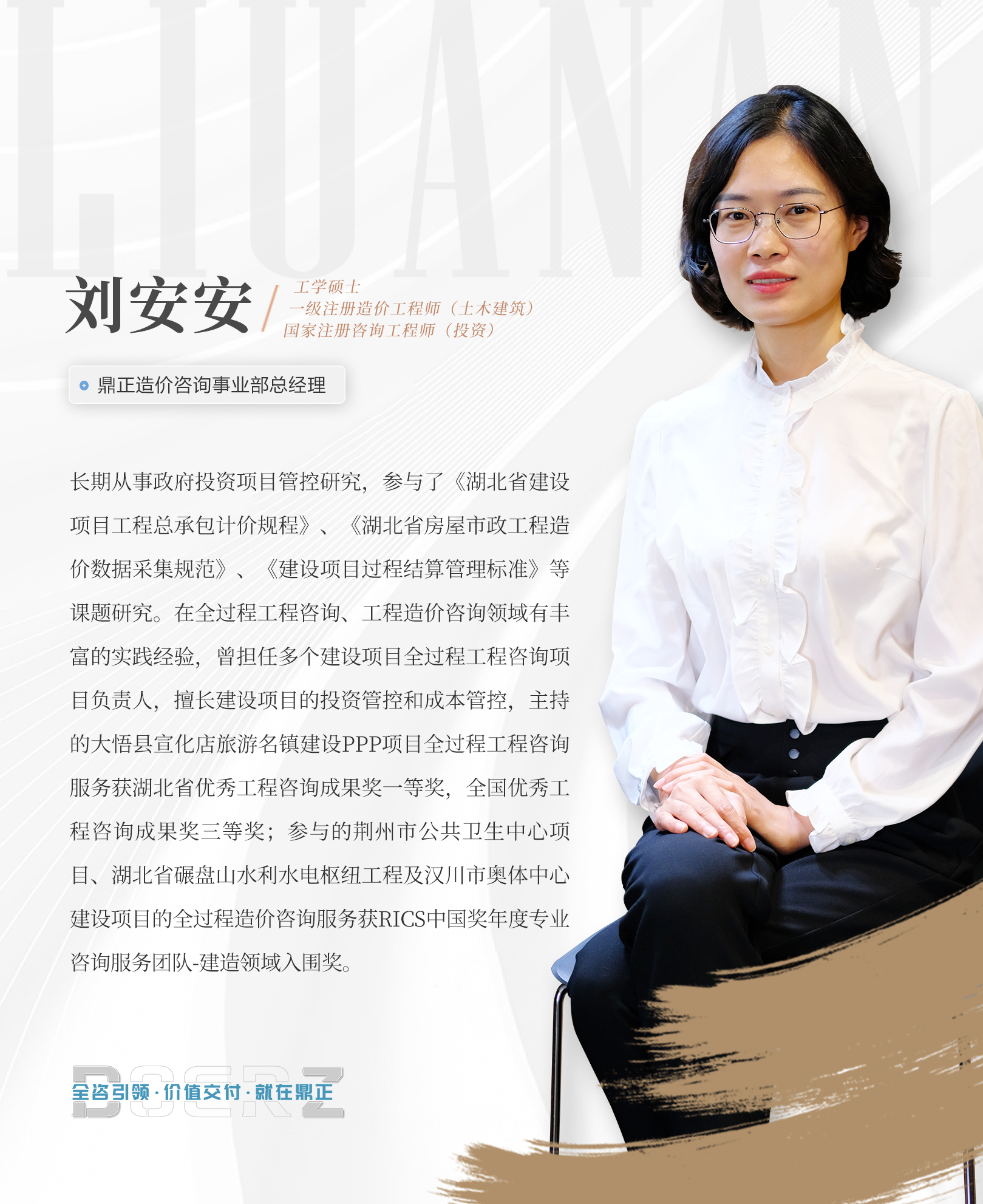 經(jīng)過(guò)現(xiàn)場(chǎng)競(jìng)聘打分,結(jié)合日常表現(xiàn)綜合評(píng)定,現(xiàn)將競(jìng)聘結(jié)果公告如下:聘任劉安安為造價(jià)咨詢事業(yè)部總經(jīng)理,負(fù)責(zé)造價(jià)咨詢事業(yè)部全面管理工作。