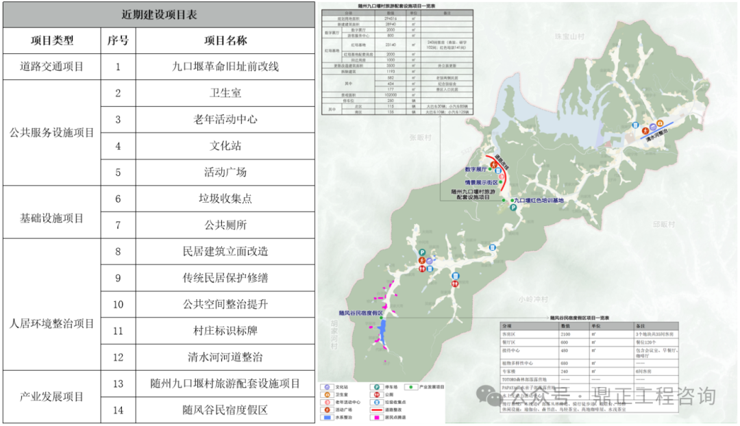 如九口堰村近期主要建設(shè)內(nèi)容為基礎(chǔ)設(shè)施與公共服務(wù)設(shè)施完善、人居環(huán)境整治,以及部分池塘整治和產(chǎn)業(yè)發(fā)展項目。