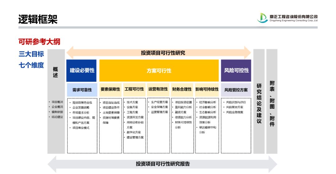 《可行性研究報(bào)告編制大綱(2023年版)》的頒布實(shí)施,對(duì)于我國(guó)新時(shí)代投資項(xiàng)目科學(xué)決策、推動(dòng)實(shí)現(xiàn)高質(zhì)量投資具有里程碑意義,鼎正作為一家綜合性咨詢企業(yè),多年來(lái)深度服務(wù)湖北省及下屬多個(gè)縣市區(qū)的經(jīng)濟(jì)建設(shè),在全過(guò)程工程咨詢、投融資咨詢、專(zhuān)項(xiàng)債咨詢、國(guó)債咨詢、PPP咨詢等,積累了良好的理論基礎(chǔ)與品牌口碑,并從咨詢實(shí)踐中摸索出一套“向前、向后、向綠色”的高質(zhì)量咨詢產(chǎn)品線,能夠提供高質(zhì)量全方位的咨詢服務(wù)。