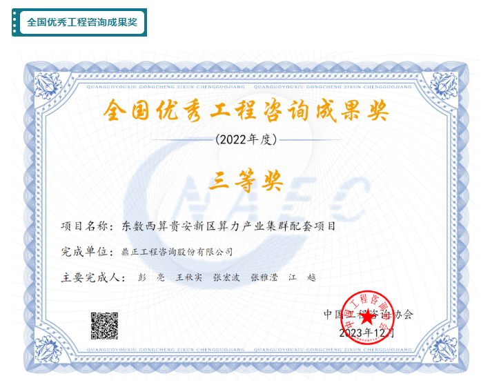 東數(shù)西算貴安新區(qū)算力產(chǎn)業(yè)集群配套項目榮獲全國優(yōu)秀工程咨詢成果獎三等獎。