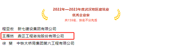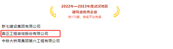 11月21日,武漢建筑業(yè)協(xié)會正式公布“2023年度武漢市最具成長性民營建筑企業(yè)”、“2022-2023年度武漢地區(qū)建筑業(yè)優(yōu)秀企業(yè)、優(yōu)秀企業(yè)家、優(yōu)秀總工程師、優(yōu)秀項目經(jīng)理”兩項評選結(jié)果,鼎正連續(xù)上榜,斬獲多項行業(yè)榮譽!