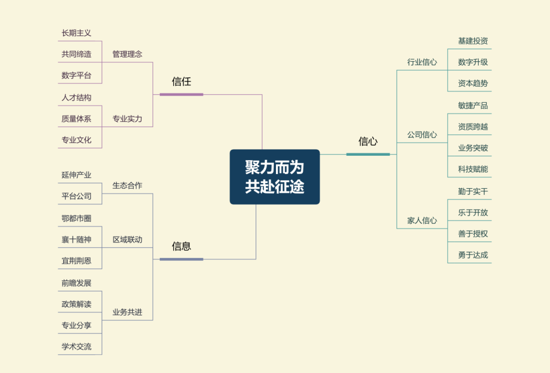 副總經(jīng)理彭亮用“信心、信息、信任”三個(gè)詞,詮釋了2023年分公司“聚力而為,共赴征途”的工作部署精神,同時(shí)為分公司走長期發(fā)展路線賦能。他指出工程咨詢行業(yè)仍然處于重要的發(fā)展機(jī)遇期,必須把握大勢、提振信心;夯實(shí)專業(yè),建立信任;互通信息、資源共享。