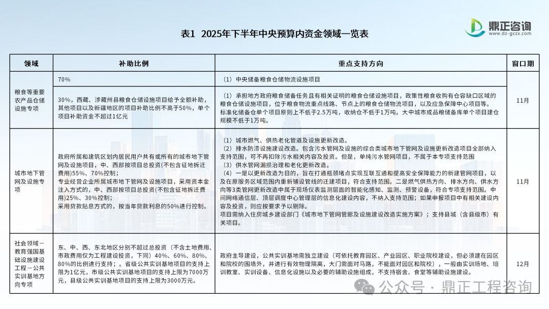 導(dǎo)讀:2025年下半年,中央預(yù)算內(nèi)資金與地方政府專項債券的申報通道進入最后沖刺階段。國家資金投放的“黃金窗口”正在收窄,為搶抓政策機遇,我們結(jié)合最新政策文件,對申報領(lǐng)域、支持方向及申報要點進行了全面梳理,助您搶占資金申報先機,精準對接國家資金,推動項目落地開花!