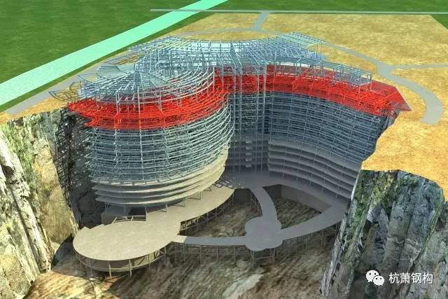 深坑酒店作為世界海拔最低的酒店,由迪拜帆船酒店原班設(shè)計(jì)人馬—阿特金斯團(tuán)隊(duì)擔(dān)任建筑設(shè)計(jì),中建八局作為項(xiàng)目總承包。其中,鋼結(jié)構(gòu)工程部分作為整個(gè)項(xiàng)目中不可或缺的重要組成,9級(jí)抗震、異形鋼結(jié)構(gòu)校正、測(cè)量、安裝等,將使建造者不僅面對(duì)一次次徹夜難眠,為技術(shù)方案冥思苦想,更要為整個(gè)項(xiàng)目的整體進(jìn)程控制好鋼結(jié)構(gòu)部分的每個(gè)時(shí)間節(jié)奏、把關(guān)好每一處鋼結(jié)構(gòu)質(zhì)量、順利實(shí)現(xiàn)每一個(gè)銜接環(huán)節(jié)等。