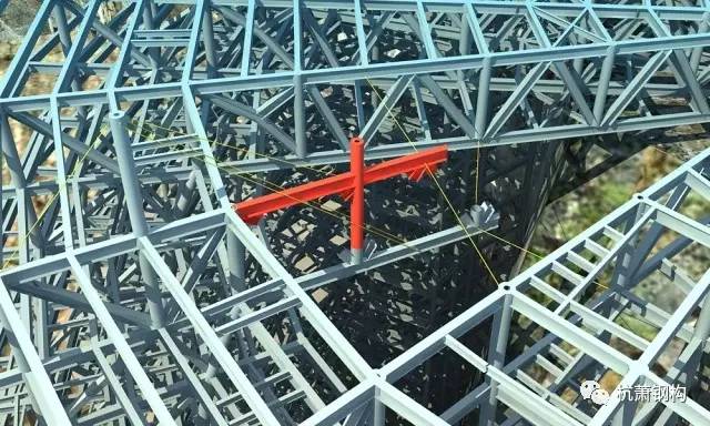 第六步:依次填充第二分段的腹桿,完成整榀桁架的安裝