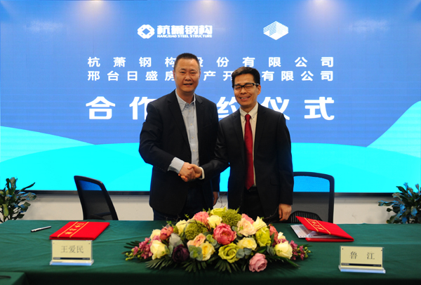 2017年4月28日,杭蕭鋼構(gòu)分別與江蘇恒健建設(shè)集團(tuán)有限公司(以下簡稱:恒健建設(shè)集團(tuán))、邢臺(tái)日盛房地產(chǎn)開發(fā)有限公司(以下簡稱:日盛地產(chǎn))簽訂了鋼結(jié)構(gòu)住宅體系戰(zhàn)略合作協(xié)議。