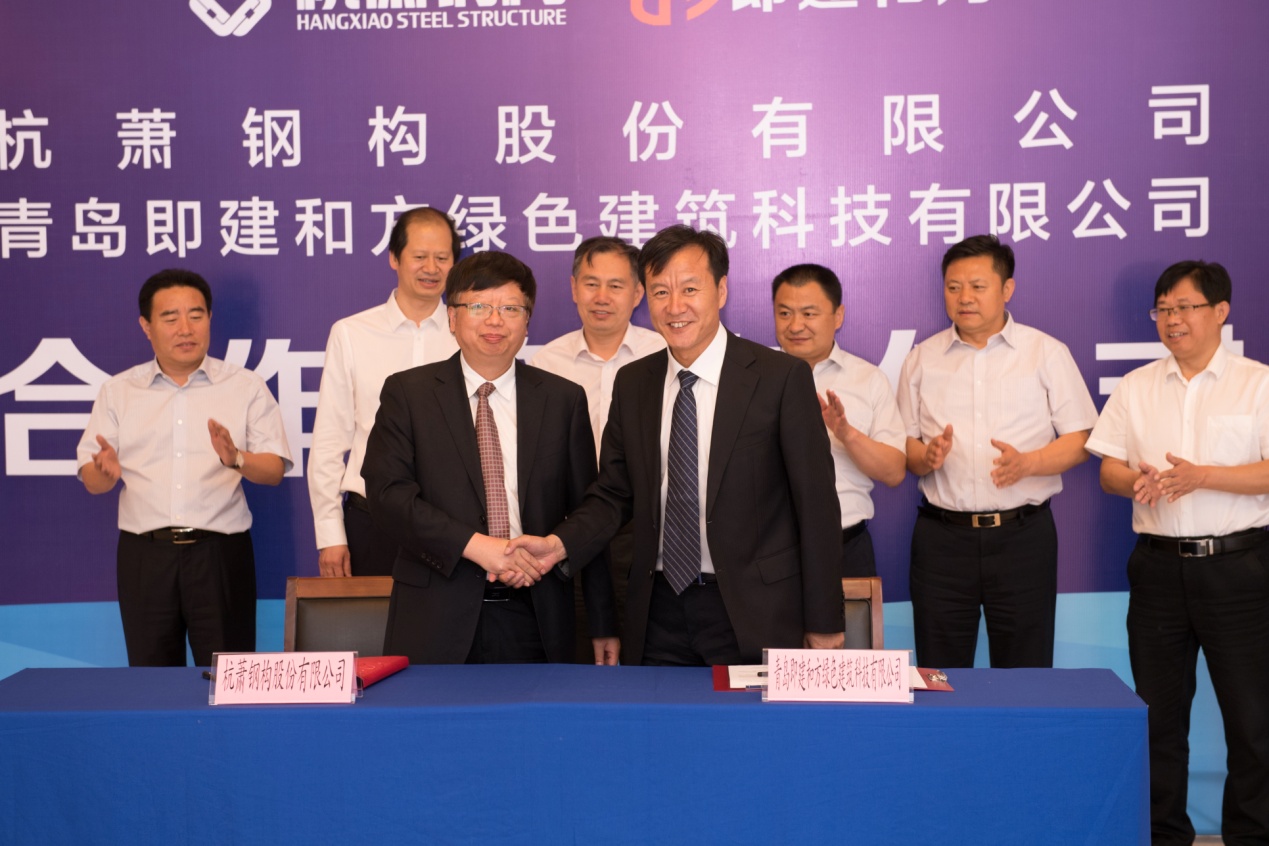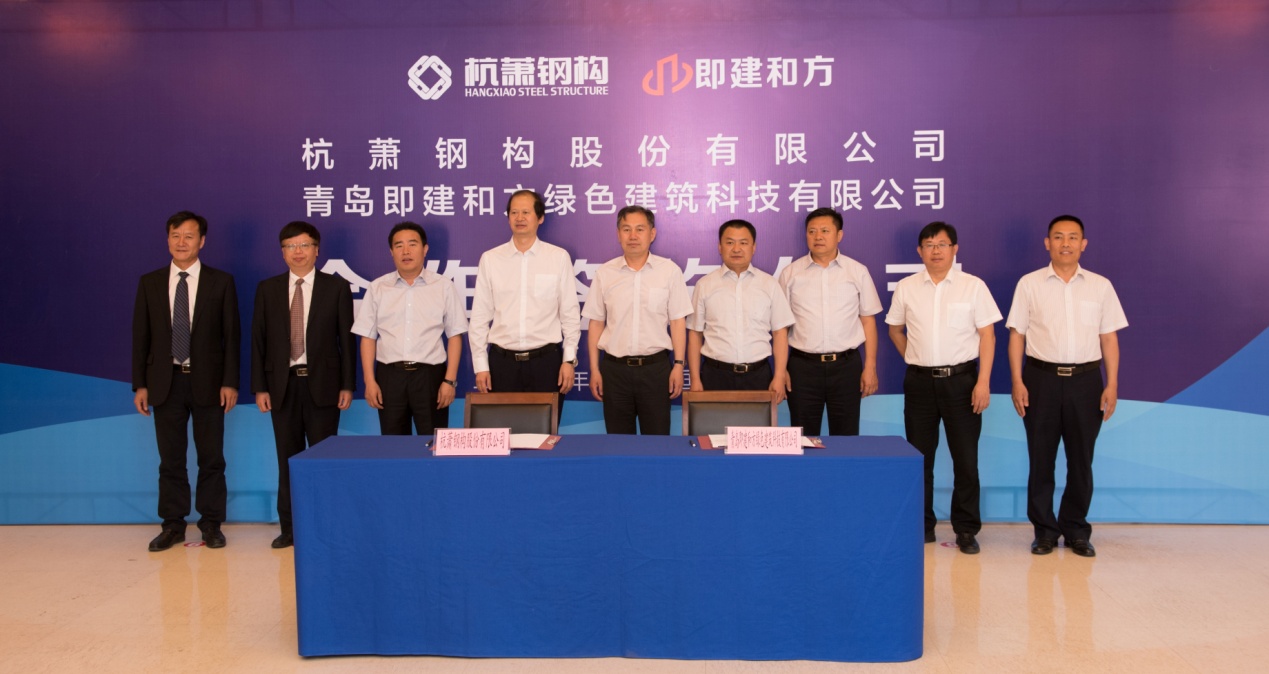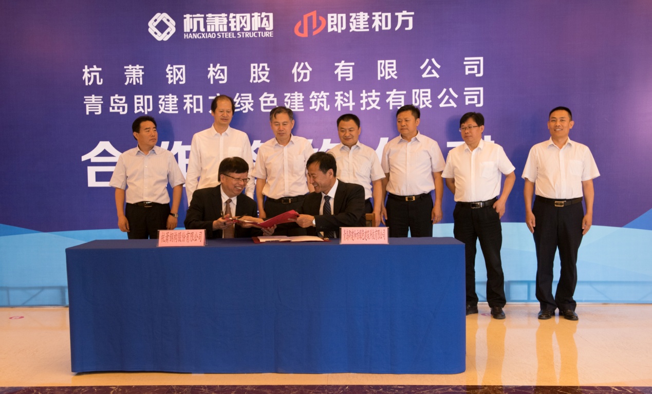 2017年6月2日,杭蕭鋼構(gòu)股份有限公司(以下簡(jiǎn)稱(chēng):杭蕭鋼構(gòu))與青島即建和方綠色建筑科技有限公司(以下簡(jiǎn)稱(chēng):青島即建和方)在山東省即墨市舉行戰(zhàn)略合作簽約儀式。