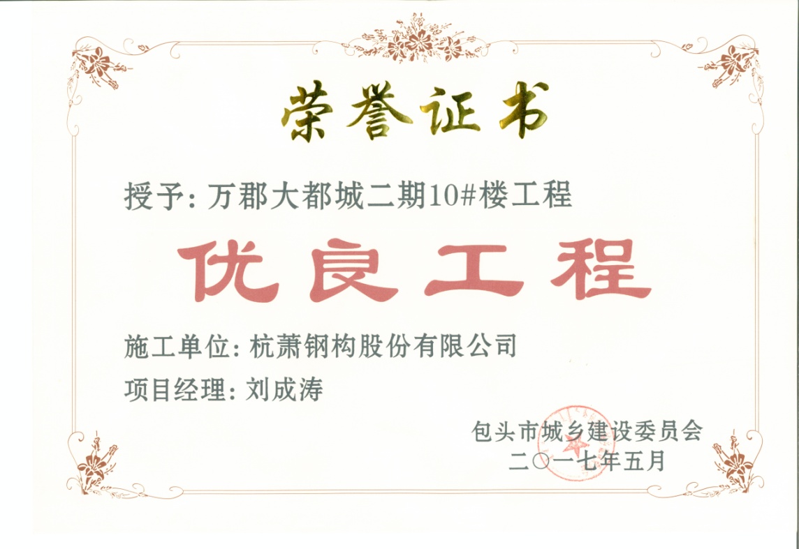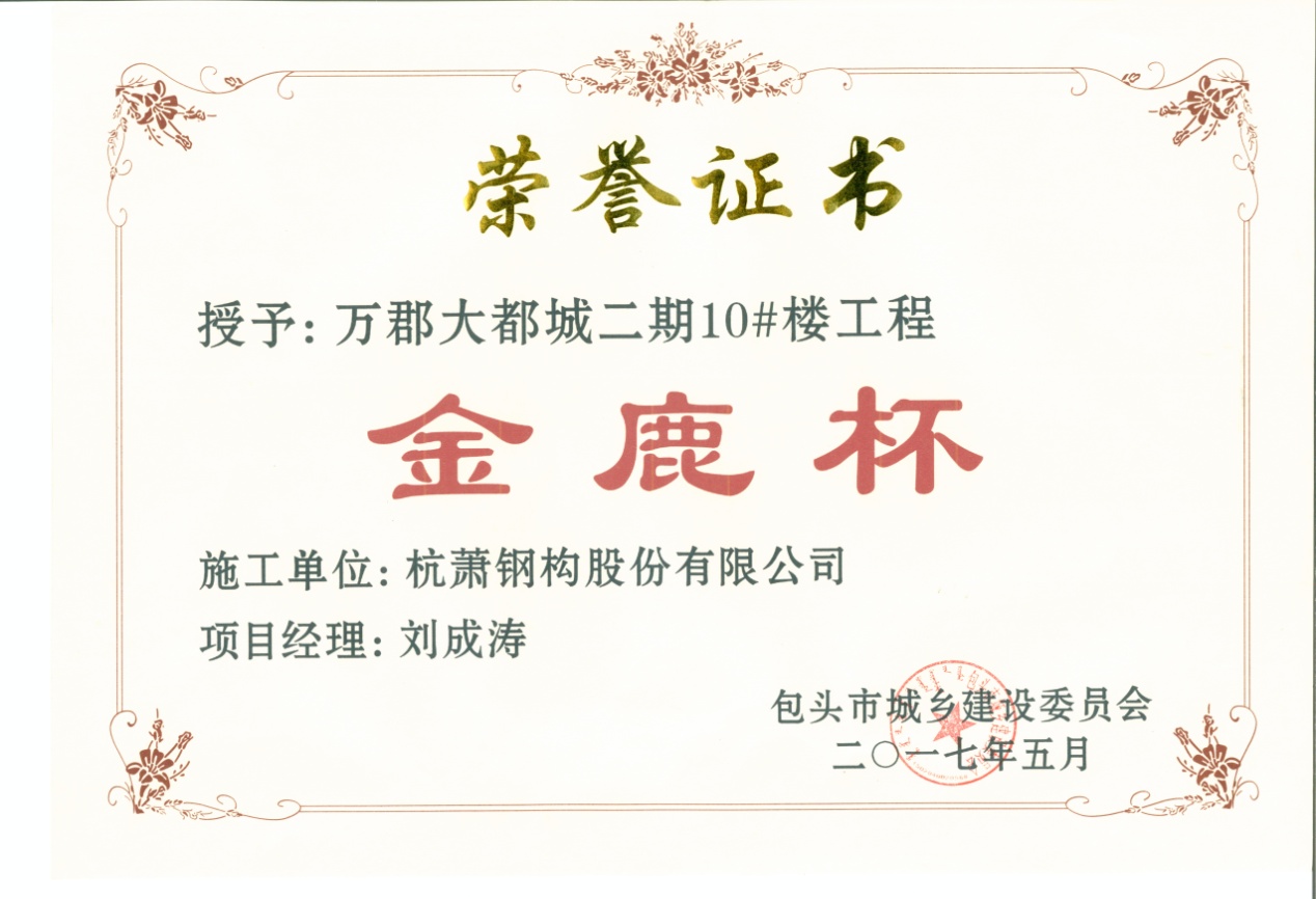 好品質(zhì)不是吹出來的,而是評(píng)出來的!近日,2016年度包頭市建設(shè)工程質(zhì)量“優(yōu)良工程”及“金鹿杯”工程獎(jiǎng)公布獲獎(jiǎng)名單,萬郡大都城二期10號(hào)樓被授予2016年度包頭市優(yōu)良工程及“金鹿杯”工程獎(jiǎng)!