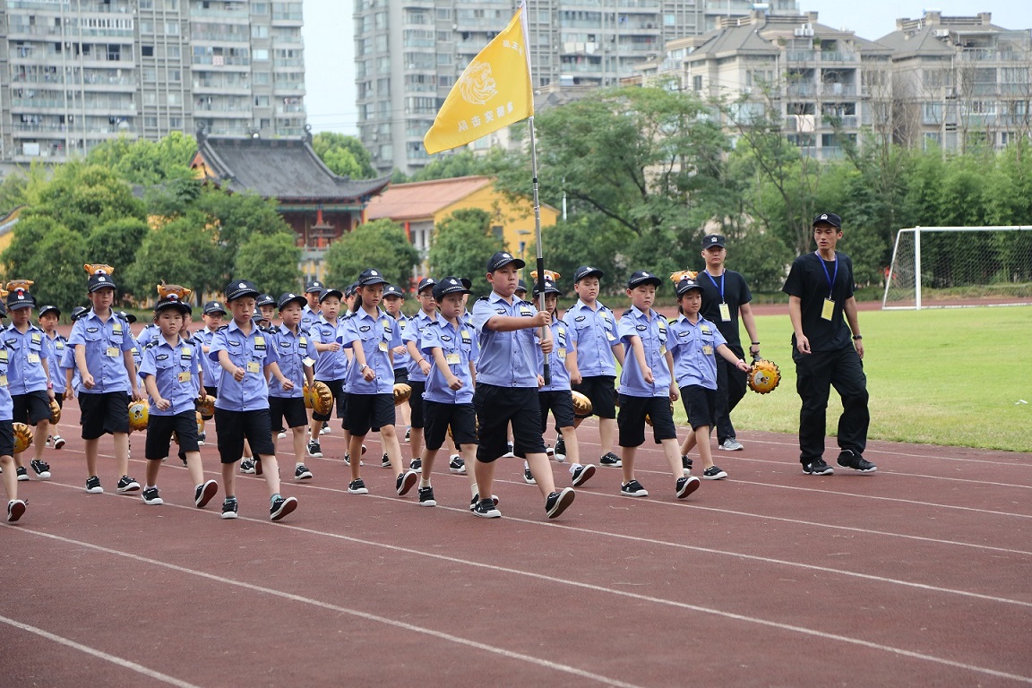 ▲7月14日下午,戴著警帽、身著“迷你警服”的小營員們排著整齊的方隊,邁著整齊劃一的步伐,喊出嘹亮的口號,用自己行動向他們的父母證明:我們克服了獨立生活困難,經(jīng)受了警訓(xùn)的磨練,學(xué)會了團結(jié)友愛。
