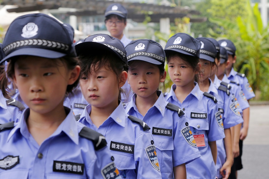 ▲7月9日下午,穿上警服的“小警察”代表們接過營旗,夏令營活動正式開始。