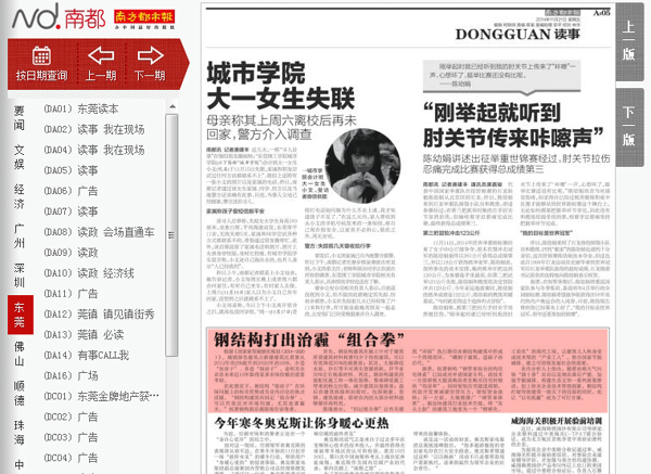 南方都市報(bào)是南方報(bào)業(yè)傳媒集團(tuán)所屬系列報(bào)之一,正式創(chuàng)刊于1997年,是廣東唯一省級(jí)綜合類大型城市日?qǐng)?bào),是中國(guó)版數(shù)最多的都市報(bào),面向珠三角地區(qū)主流人群,日發(fā)行量180萬(wàn)。
