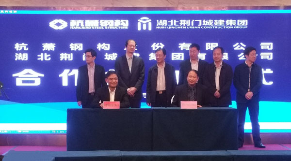 2017年4月20日,杭蕭鋼構(gòu)股份有限公司(以下簡(jiǎn)稱(chēng):杭蕭鋼構(gòu))與湖北荊門(mén)城建集團(tuán)有限公司(以下簡(jiǎn)稱(chēng):湖北荊門(mén)城建)簽署戰(zhàn)略合作協(xié)議。雙方就杭蕭鋼構(gòu)鋼結(jié)構(gòu)住宅體系的相關(guān)技術(shù)資源的使用和實(shí)施許可等方面達(dá)成共識(shí),在當(dāng)?shù)毓餐ㄔO(shè)裝配式鋼結(jié)構(gòu)生產(chǎn)基地。