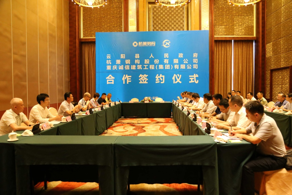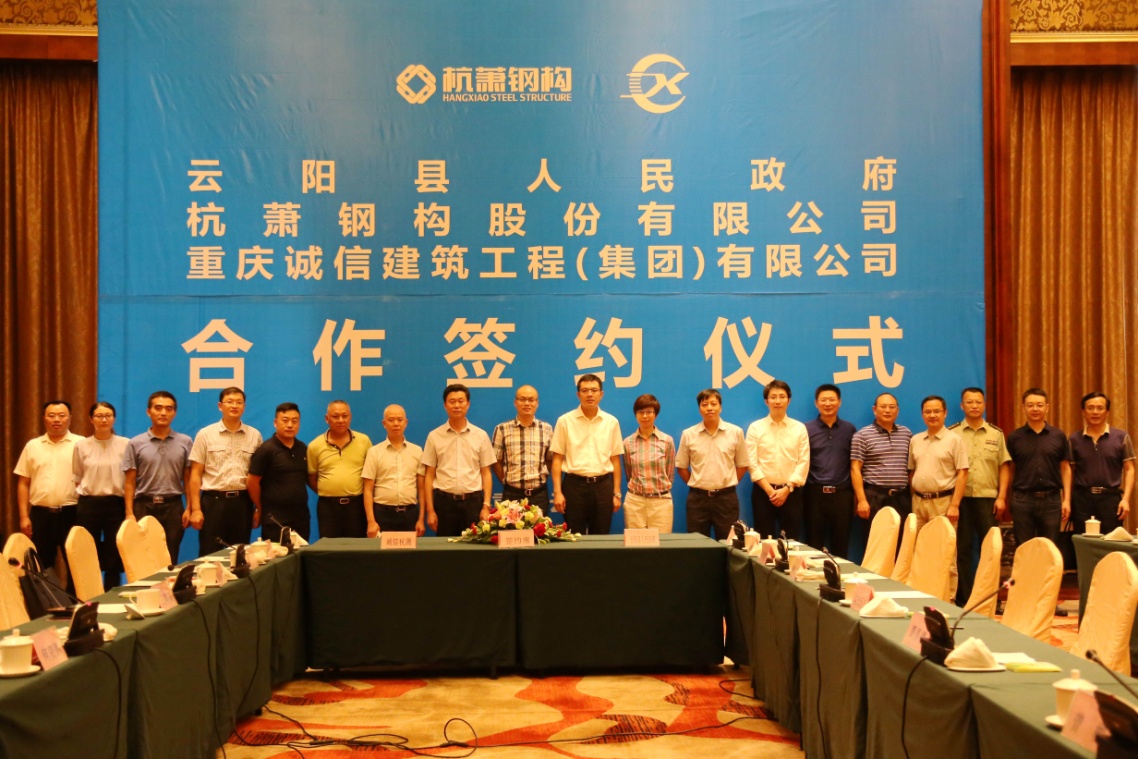8月10日,杭蕭鋼構(gòu)股份有限公司與重慶誠信建筑工程(集團)有限公司(簡稱:重慶誠信集團)在重慶市云陽縣簽署戰(zhàn)略合作協(xié)議。