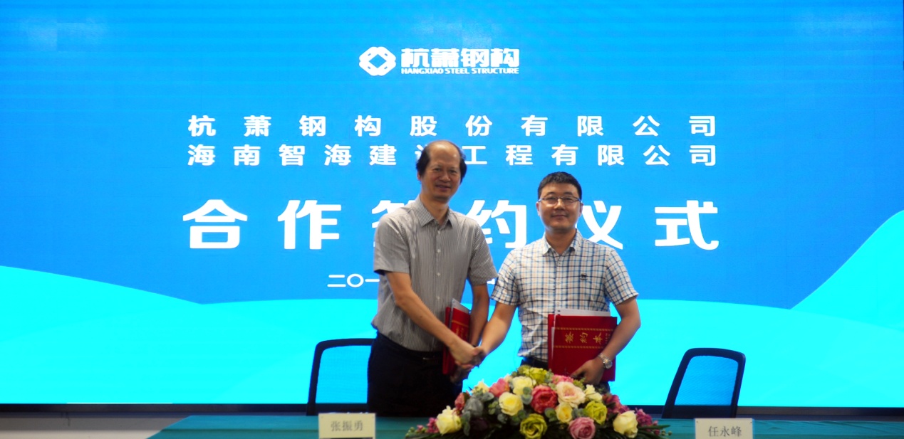2017年7月28日,杭蕭鋼構(gòu)股份有限公司(以下簡稱:杭蕭鋼構(gòu))與海南智海建設(shè)工程有限公司(以下簡稱:海南智海建設(shè))在杭州正式簽署戰(zhàn)略合作協(xié)議。海南智海建設(shè)董事長任永峰,杭蕭鋼構(gòu)董事、總裁張振勇,副總裁兼董事會秘書陳瑞等出席簽約儀式。