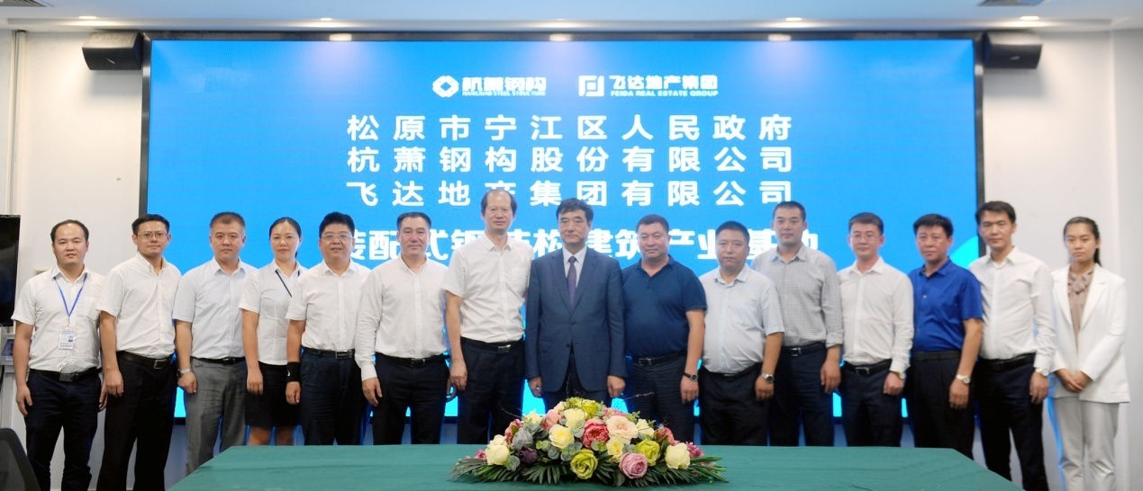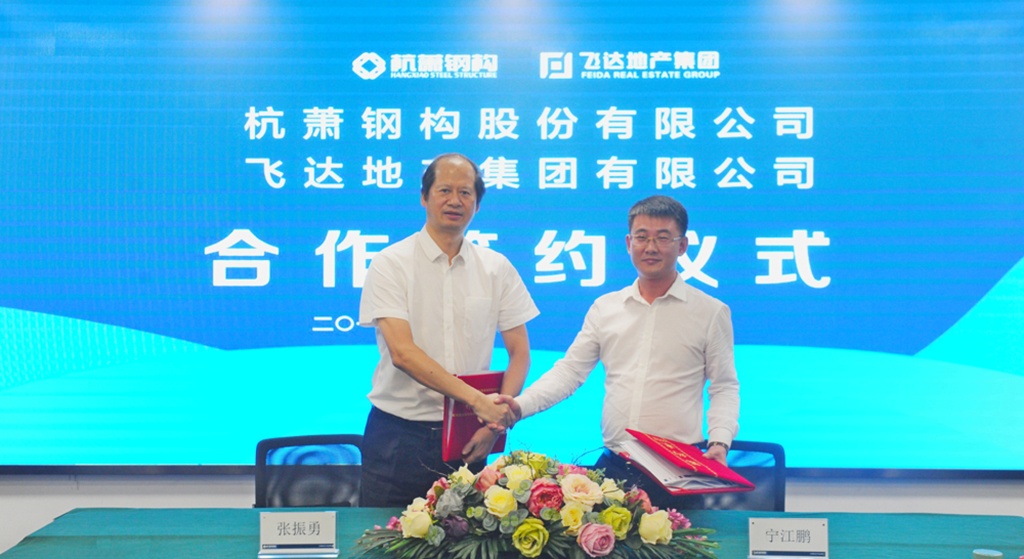 在舉國(guó)上下以飽滿的熱情喜迎黨的十九大勝利召開(kāi)的濃厚氛圍中,2017年10月10日,杭蕭鋼構(gòu)股份有限公司(以下簡(jiǎn)稱(chēng)杭蕭鋼構(gòu))與飛達(dá)地產(chǎn)集團(tuán)有限公司(以下簡(jiǎn)稱(chēng)飛達(dá)地產(chǎn)集團(tuán))在杭州正式簽署戰(zhàn)略合作協(xié)議,用一份亮麗新答卷,向黨的十九大獻(xiàn)禮。這是杭蕭鋼構(gòu)在發(fā)展戰(zhàn)略中寫(xiě)下的濃墨重彩的一筆,杭蕭鋼構(gòu)將攜手東北地區(qū)首家戰(zhàn)略合作伙伴,在吉林省松原市建設(shè)造福百姓的鋼結(jié)構(gòu)抗震安全新民居工程。
