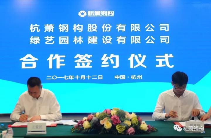 繼接連簽約天津市、吉林省當(dāng)?shù)厥准覒?zhàn)略合作伙伴后,2017年10月12日,又一喜訊傳來,杭蕭鋼構(gòu)股份有限公司(以下簡稱杭蕭鋼構(gòu))與綠藝園林建設(shè)有限公司(以下簡稱綠藝園林)在杭州正式簽署戰(zhàn)略合作協(xié)議。