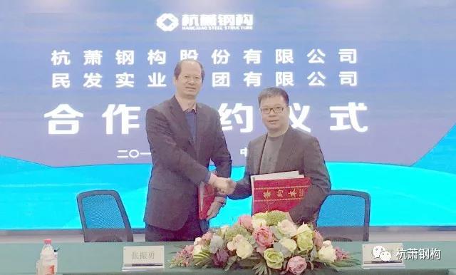 同樣在杭蕭鋼構與民發(fā)實業(yè)的簽約儀式上,雙方表達了對合作項目的發(fā)展?jié)摿颓熬俺錆M信心。民發(fā)實業(yè)董事長林佺祥、副總裁陳小珂;杭蕭鋼構總裁張振勇、副總裁陸擁軍、副總裁尹衛(wèi)澤等出席簽約儀式并交流。