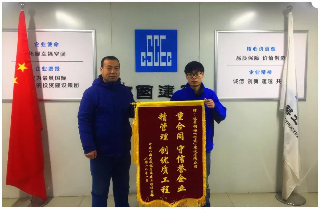 近日,杭蕭鋼構(河北)建設有限公司收到來自中國建筑第八工程局大成飯店改建工程項目部的錦旗,對河北杭蕭在大成飯店改建工程項目鋼結構施工中表現(xiàn)出的優(yōu)秀施工管理能力和誠信履約能力給予了高度認可。