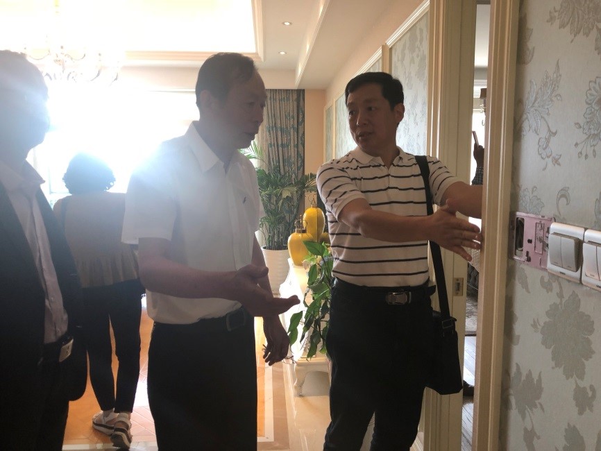 ▲住房和城鄉(xiāng)建設(shè)部科技與產(chǎn)業(yè)化發(fā)展中心陳中博副主任帶檢查組聽取沙盤介紹