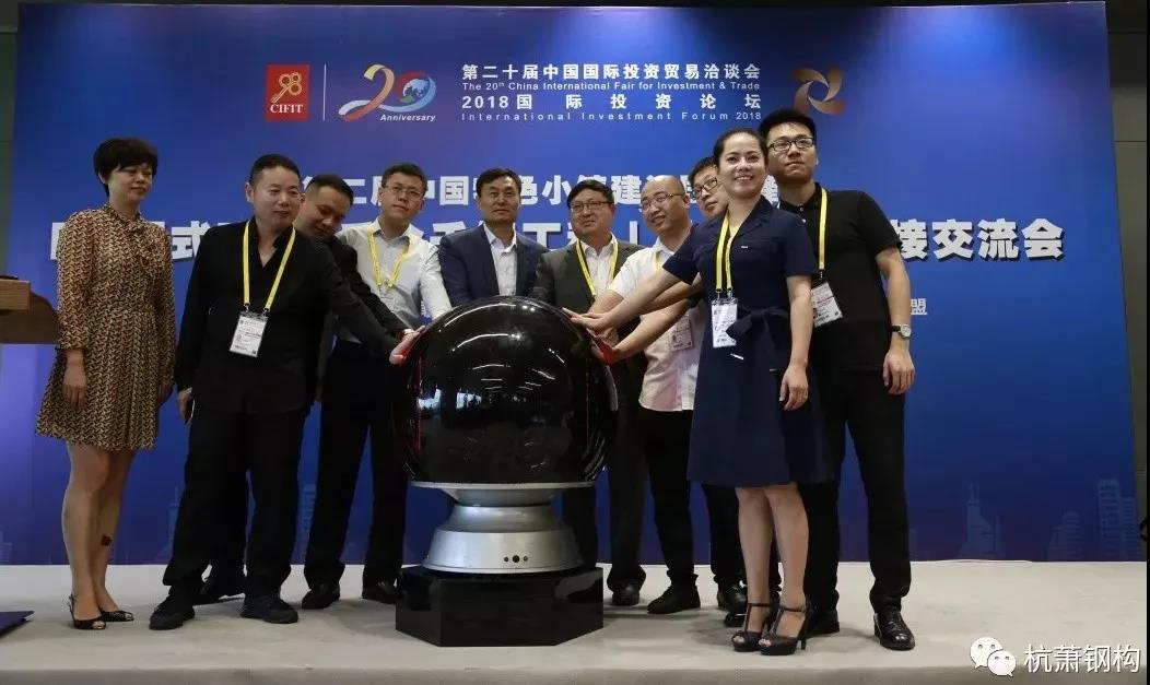 交流會(huì)現(xiàn)場,杭蕭鋼構(gòu)榮獲《2018中國裝配式建筑科技創(chuàng)新示范企業(yè)》獎(jiǎng)項(xiàng),并參與了“中國裝配式建筑產(chǎn)城聯(lián)盟”啟動(dòng)儀式環(huán)節(jié)。