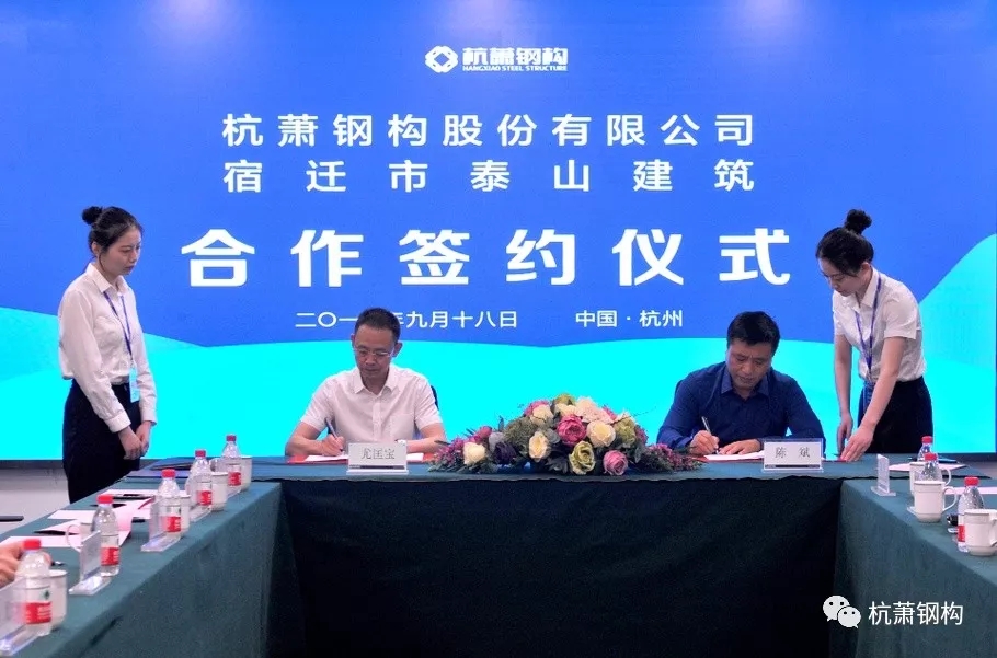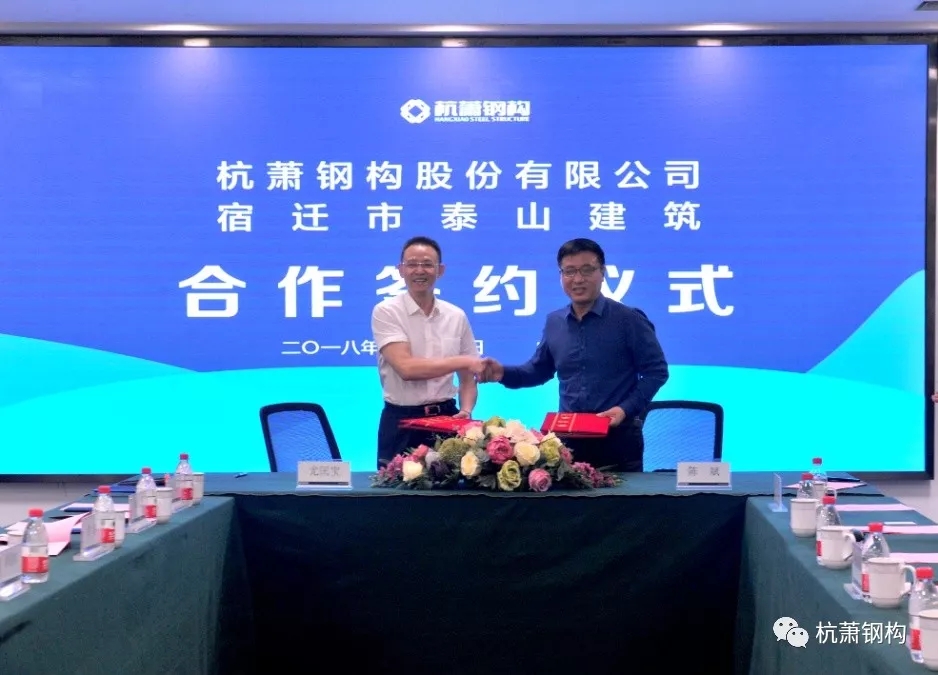 9月18日上午,杭蕭鋼構(gòu)股份有限公司(以下簡稱“杭蕭鋼構(gòu)”)與江蘇萬恒地產(chǎn)集團(以下簡稱“萬恒集團”)旗下——宿遷市泰山建筑有限公司(以下簡稱“宿遷泰山”)簽署戰(zhàn)略合作協(xié)議。宿遷泰山董事長陳斌、杭蕭鋼構(gòu)副總裁尤匡寶作為企業(yè)代表簽署協(xié)議。