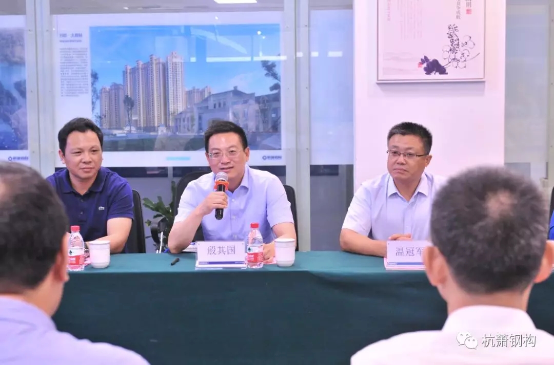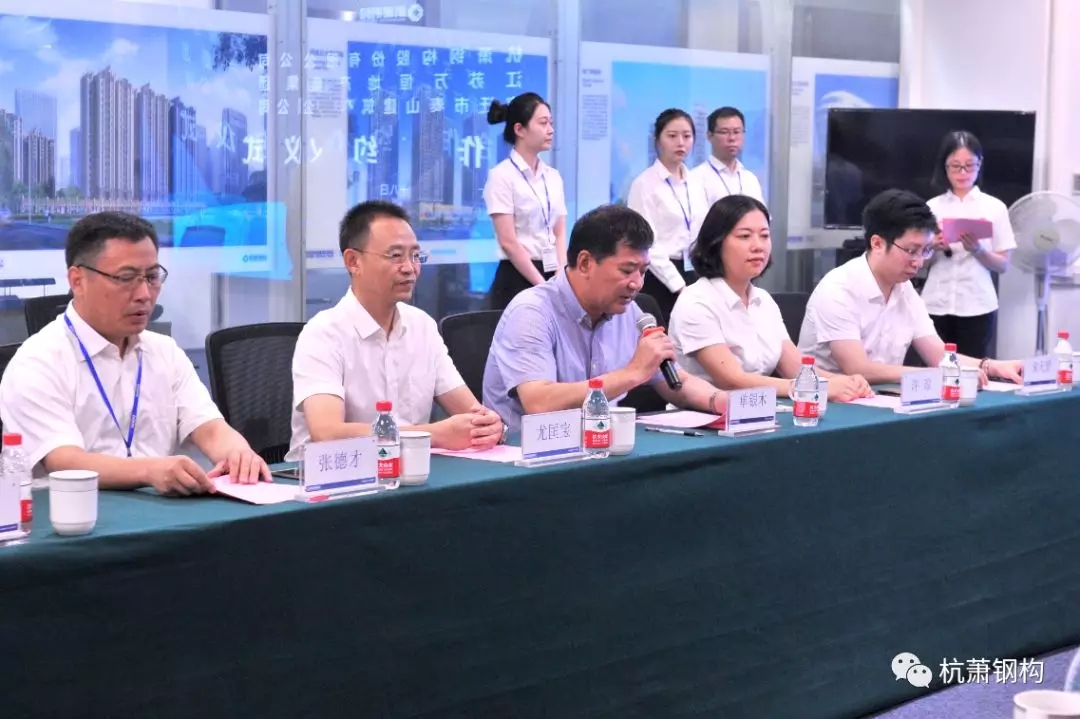 宿遷泰山董事長陳斌在致辭中講到,隨著近年來建筑業(yè)變革和整體轉(zhuǎn)型,必須謀求轉(zhuǎn)型發(fā)展,本次與國內(nèi)鋼結(jié)構(gòu)行業(yè)領(lǐng)軍企業(yè)杭蕭鋼構(gòu)的強強聯(lián)合,標志著正式開啟建筑工業(yè)化發(fā)展的新篇章,將充分學習杭蕭鋼構(gòu)的核心技術(shù)體系,真正實現(xiàn)從傳統(tǒng)建筑業(yè)向現(xiàn)代建筑業(yè)的轉(zhuǎn)變,全力打造裝配式建筑發(fā)展的新局面,共同向助推“綠色建筑和建材”,大力發(fā)展裝配式鋼結(jié)構(gòu)建筑,提高工程標準和質(zhì)量的目標邁進,以行動踐行 “綠水青山就是金山銀山”發(fā)展理念。
