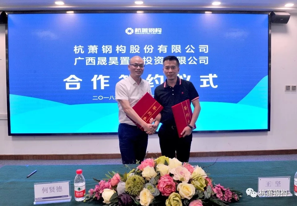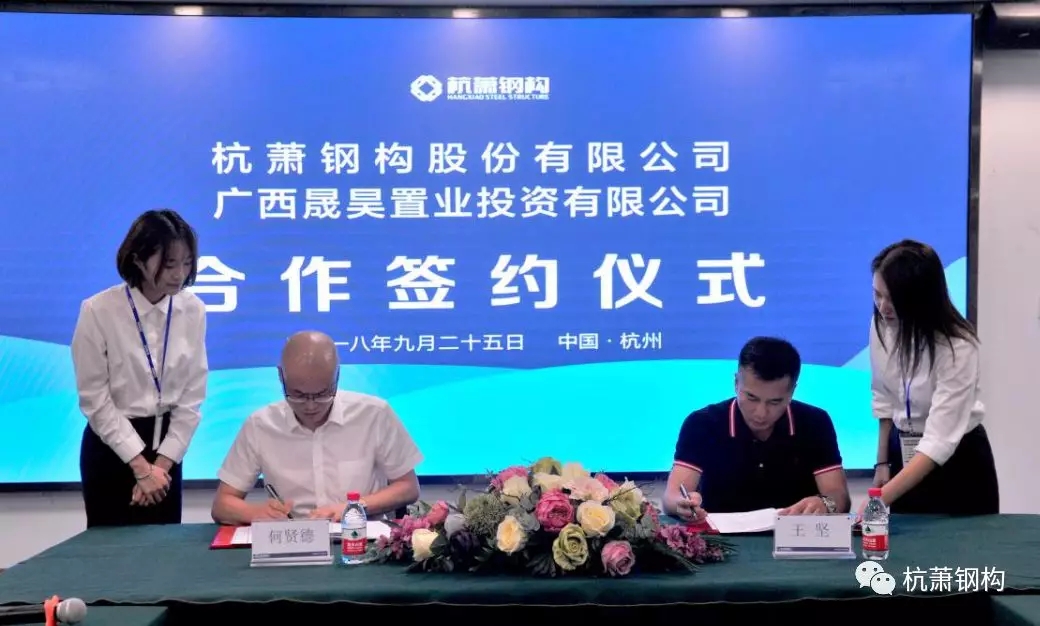 9月25日下午,杭蕭鋼構股份有限公司(以下簡稱“杭蕭鋼構”)與廣西晟昊置業(yè)投資有限公司(以下簡稱“晟昊置業(yè)”)簽署戰(zhàn)略合作協(xié)議。晟昊置業(yè)總經理王堅、杭蕭鋼構副總裁何賢德作為企業(yè)代表簽署協(xié)議。