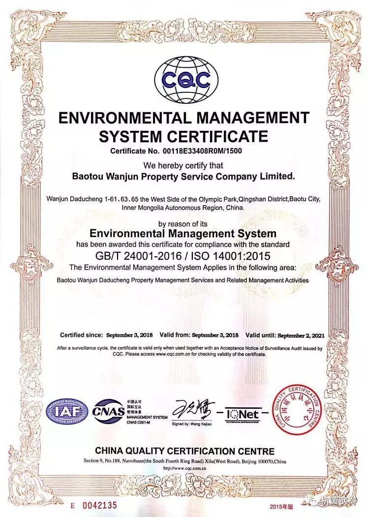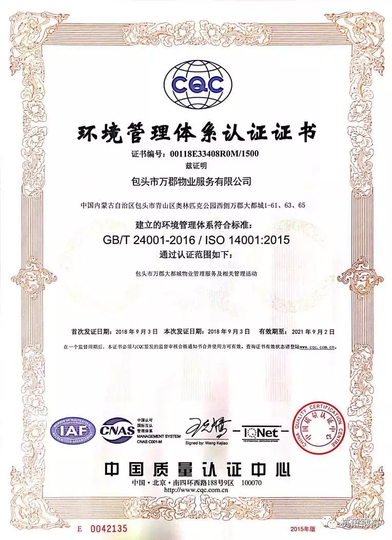 近日,杭蕭鋼構(gòu)股份有限公司(以下簡稱“杭蕭鋼構(gòu)”)控股子公司——包頭市萬郡物業(yè)服務(wù)有限公司(以下簡稱“萬郡物業(yè)”)順利通過ISO14001環(huán)境質(zhì)量體系認(rèn)證,同時(shí)完成了2018年ISO9001質(zhì)量體系認(rèn)證換版工作。標(biāo)志著萬郡物業(yè)在綠色建筑管理水平、服務(wù)標(biāo)準(zhǔn)方面邁向一個(gè)新臺(tái)階。