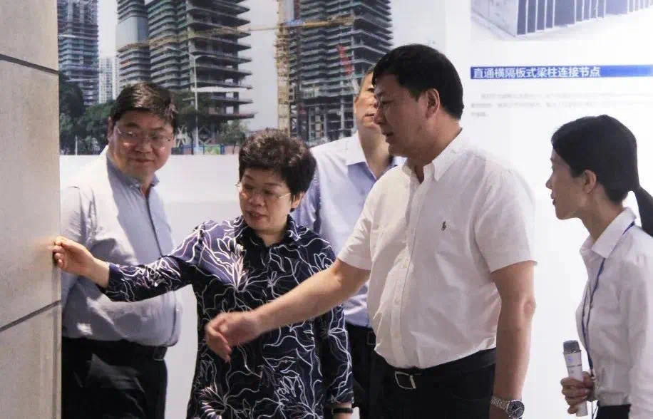 5月14日,浙江省副省長陳奕君率隊調(diào)研杭蕭鋼構(gòu)股份有限公司(以下簡稱“杭蕭鋼構(gòu)”)建筑工業(yè)化發(fā)展情況。浙江省建設廳黨組成員、省建筑業(yè)管理總站站長朱永斌,杭州市政府黨組成員、副市長繆承潮,杭州市建委黨組副書記、副主任董天樂,蕭山區(qū)政府黨組成員、副區(qū)長吳煒煒,錢江世紀城黨工委書記、管委會主任秦劍云等省市區(qū)相關(guān)領導參加調(diào)研。杭蕭鋼構(gòu)董事長單銀木、常務副總裁兼萬郡綠建董事長陸擁軍、股份公司總經(jīng)理郭立湘等陪同調(diào)研。
