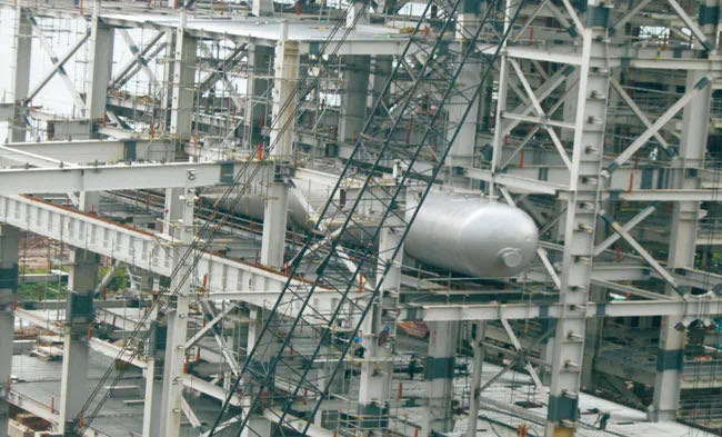 該項(xiàng)目是河北杭蕭承接的首個(gè)設(shè)備精加工鋼結(jié)構(gòu)制作工程,屬于設(shè)備精加工鋼結(jié)構(gòu)。項(xiàng)目?jī)?nèi)部結(jié)構(gòu)復(fù)雜、分體構(gòu)件需預(yù)拼裝、拼裝精度要求高,整體制作要求遠(yuǎn)高于國(guó)內(nèi)外鋼結(jié)構(gòu)建筑工程。