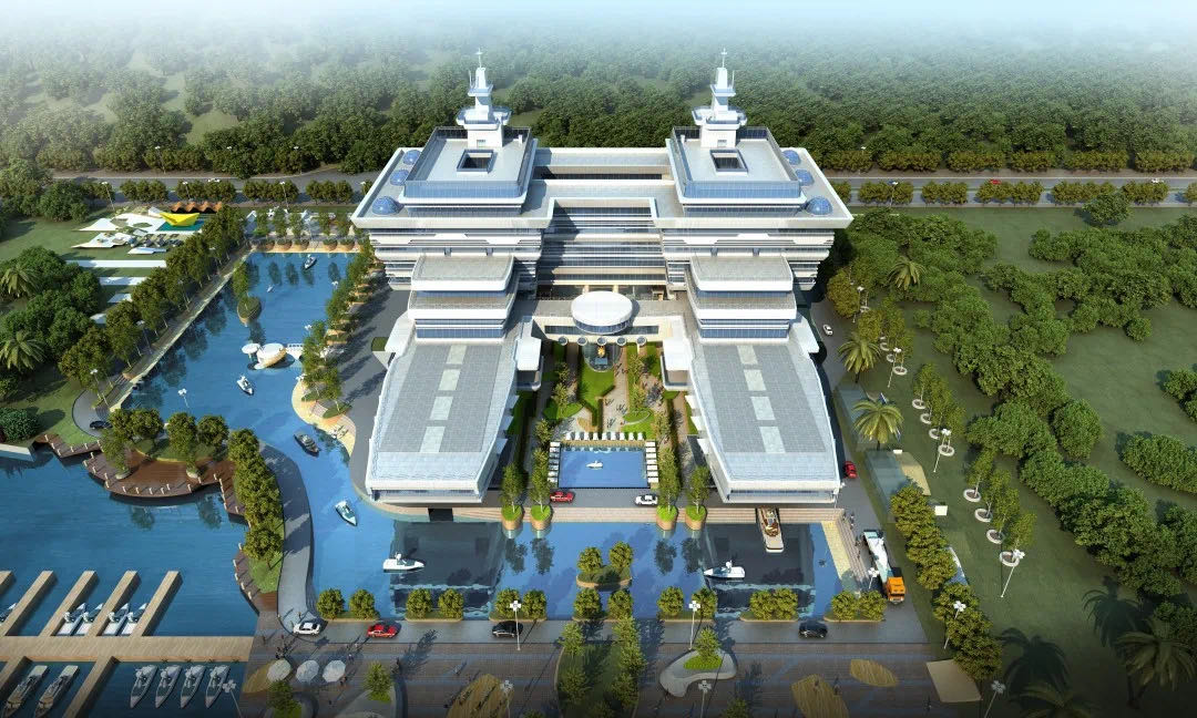 雙船體建筑屹立于海邊,船頭昂首面海,整體結(jié)構(gòu)凹凸有致又現(xiàn)遒勁之力,猶如兩艘漂浮于碼頭正待遠(yuǎn)航的新型艦船,極具現(xiàn)代感的建筑立面與城市及海洋和諧結(jié)合。無人船基地將憑依其多功能、高效率的多元化空間組合形態(tài)提升城市經(jīng)濟(jì)與建筑文明的發(fā)展高度,提升珠三角核心城市功能,彰顯珠海魅力。