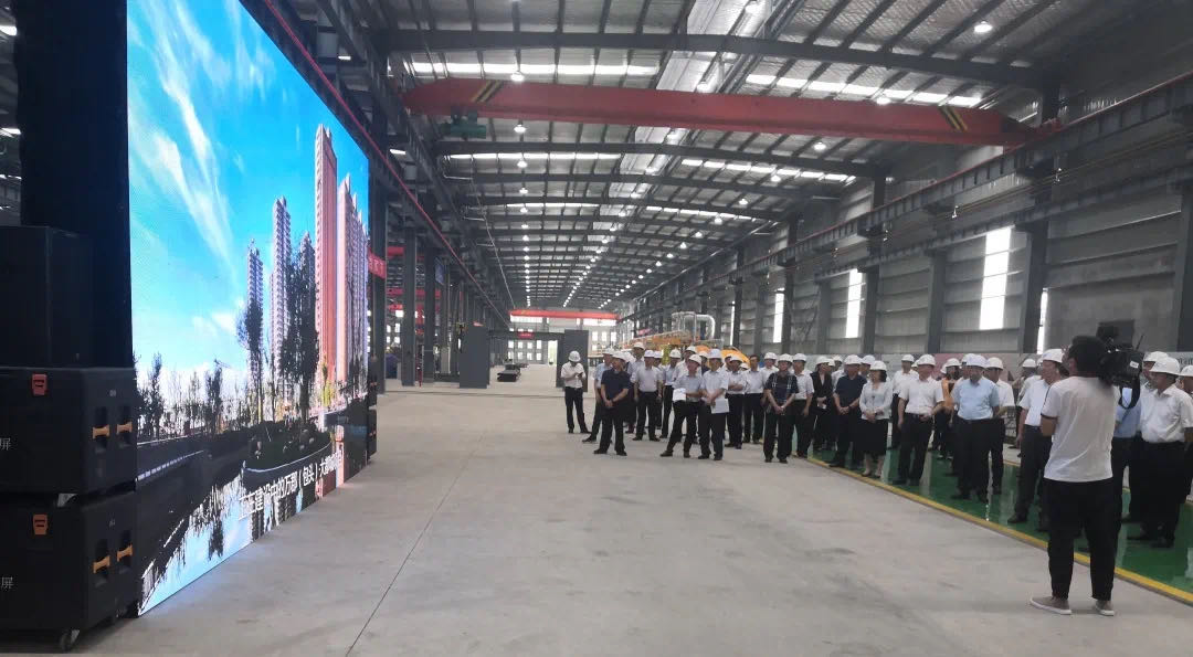 近日,江蘇省泰州市委書記史立軍率全市“三比一提升”?近兩百余人觀摩團(tuán)蒞臨杭蕭鋼構(gòu)戰(zhàn)略合作參股公司——江蘇江海杭蕭綠色建筑科技有限公司(以下簡稱“江蘇江海杭蕭”)觀摩考察。