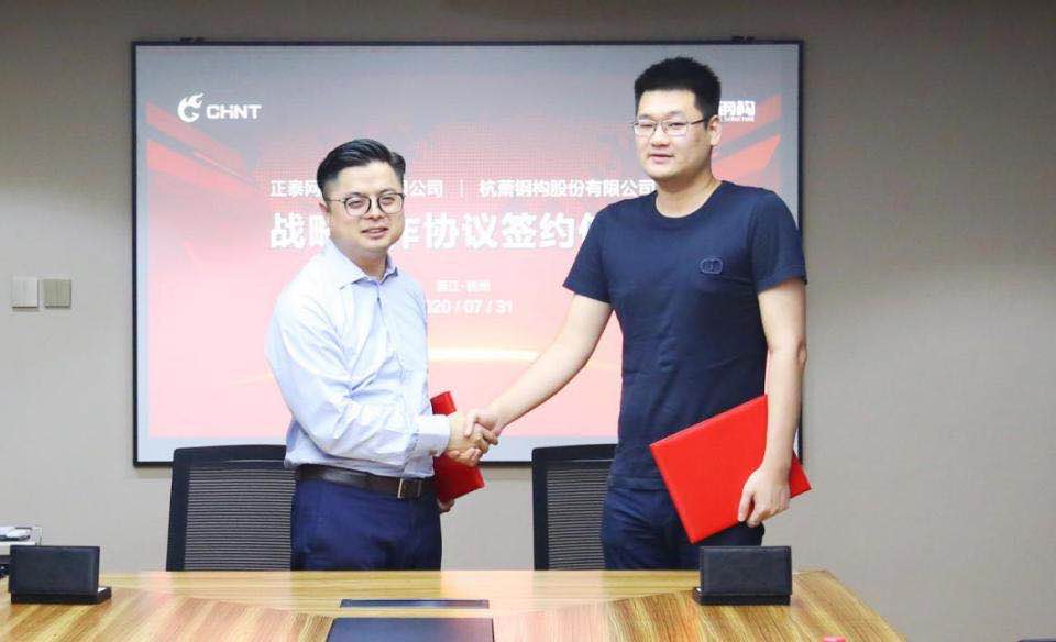近日,杭蕭鋼構(gòu)股份有限公司(以下簡稱“杭蕭鋼構(gòu)”)與正泰網(wǎng)絡(luò)科技有限公司(以下簡稱“正泰網(wǎng)絡(luò)”)簽署戰(zhàn)略合作協(xié)議。正泰網(wǎng)絡(luò)總經(jīng)理南君俠、杭蕭鋼構(gòu)集團總裁單際華作為企業(yè)代表簽署協(xié)議。