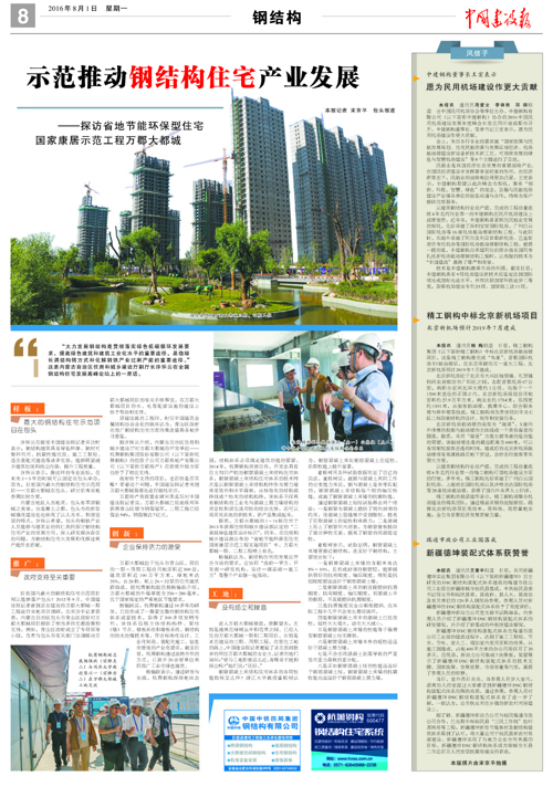 《中國建設(shè)報(bào)》2016年8月1日08版“鋼結(jié)構(gòu)”?報(bào)道?