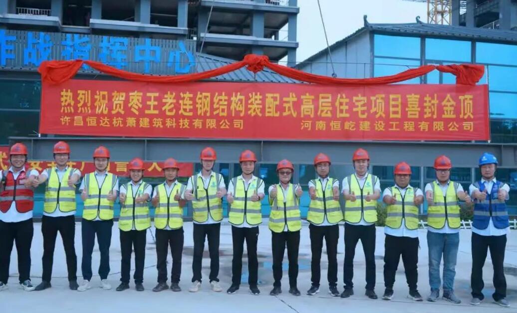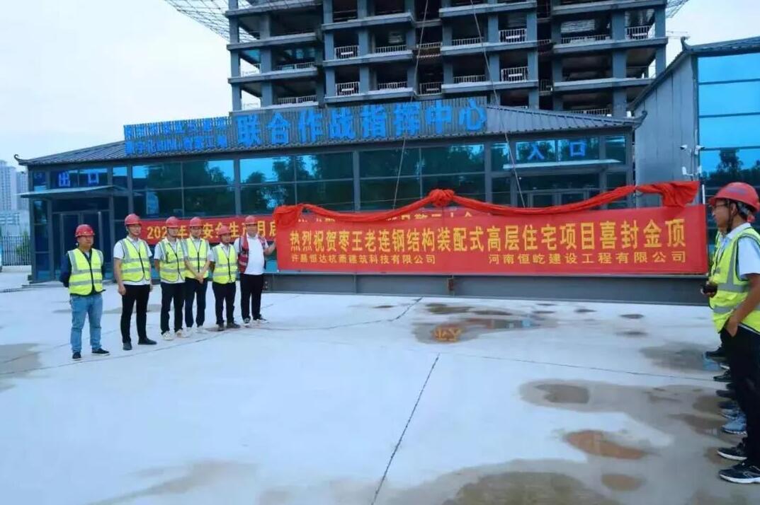近日,由杭蕭鋼構(gòu)戰(zhàn)略合作參股公司——許昌恒達(dá)杭蕭建筑科技有限公司(以下簡稱“許昌恒達(dá)杭蕭”)承建的禹州市棗王、老連棚戶區(qū)改造安置房建設(shè)工程D塊地5#樓項(xiàng)目隨著最后一根鋼梁精準(zhǔn)落位,順利封頂。