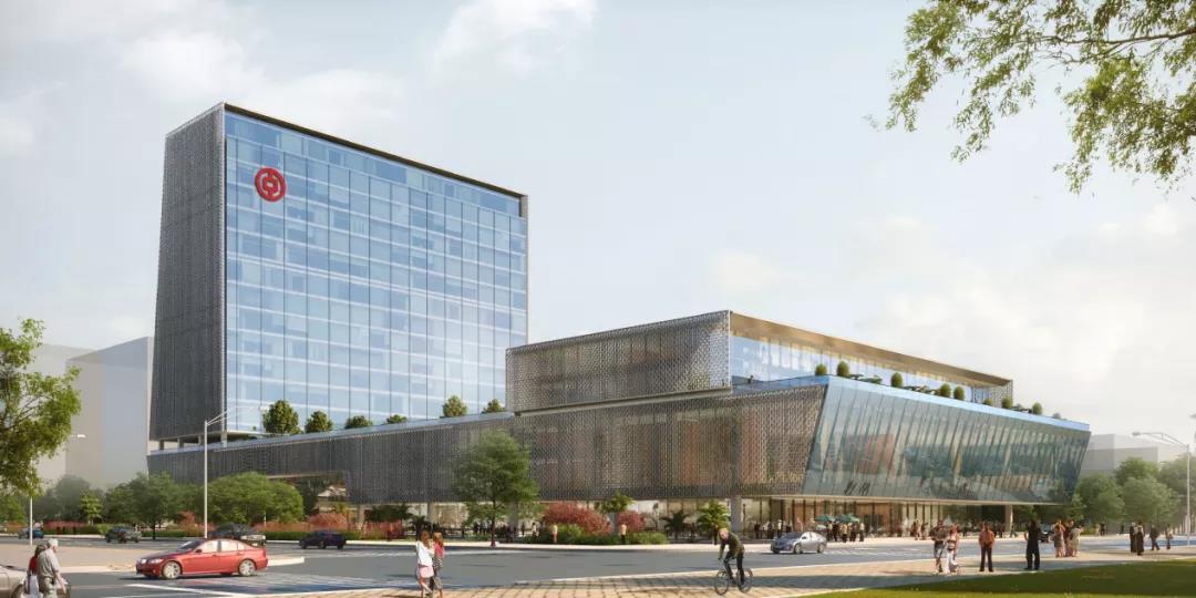 項目主要建設(shè)內(nèi)容為商務(wù)辦公、技術(shù)運(yùn)行保障、公共服務(wù)、后勤輔助、地下停車場等。建筑被設(shè)計成一組不同的浮動體,每個具有獨特的形態(tài),通過一個巨大的連續(xù)裙樓相互連接。裙樓設(shè)于場地和多個庭院四周,從而讓陽光、空氣和景觀貫穿整個建筑。