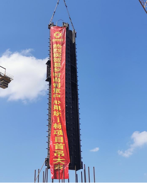 近日,杭蕭鋼構(gòu)(麗水)有限公司(以下簡稱“麗水杭蕭”)承建的溫鄉(xiāng)時尚創(chuàng)意中心B16-02地塊1#樓項(xiàng)目鋼結(jié)構(gòu)工程順利完成首根鋼柱吊裝。