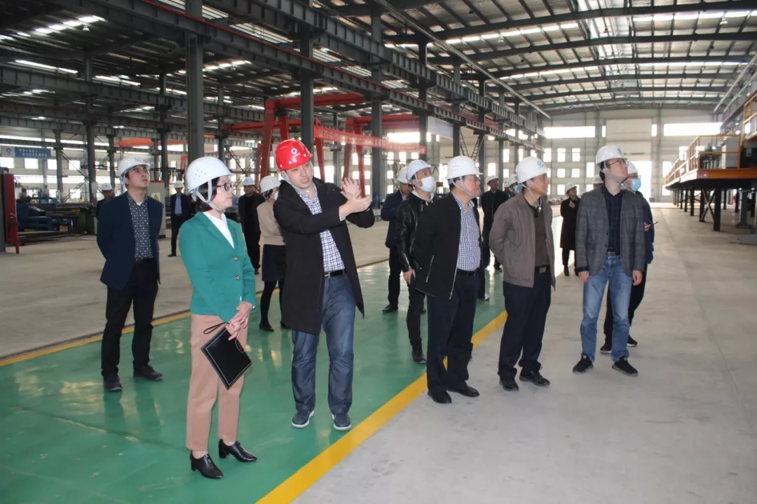 隨后,領(lǐng)導(dǎo)一行又參觀了江蘇江海杭蕭裝配式鋼結(jié)構(gòu)生產(chǎn)基地,江蘇江海杭蕭總經(jīng)理李凱陪同并詳細(xì)介紹了車間的智能化生產(chǎn)設(shè)備和生產(chǎn)工藝。