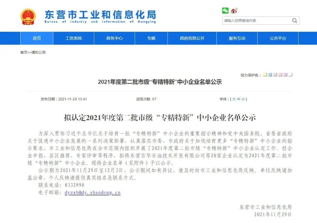 東營市“專精特新”中小企業(yè)認(rèn)定公示