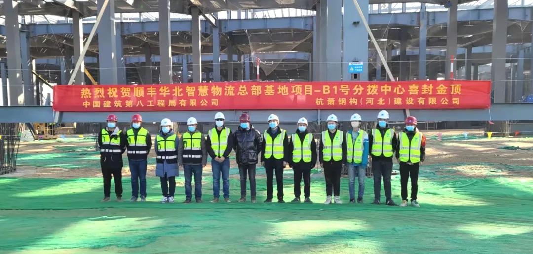 近期,由杭蕭鋼構(gòu)(河北)建設(shè)有限公司(以下簡(jiǎn)稱“河北杭蕭”)承建的順豐華北智慧物流總部基地項(xiàng)目,完成了最后一根鋼梁的吊裝,標(biāo)志著該項(xiàng)目順利迎來(lái)了主體結(jié)構(gòu)的封頂。