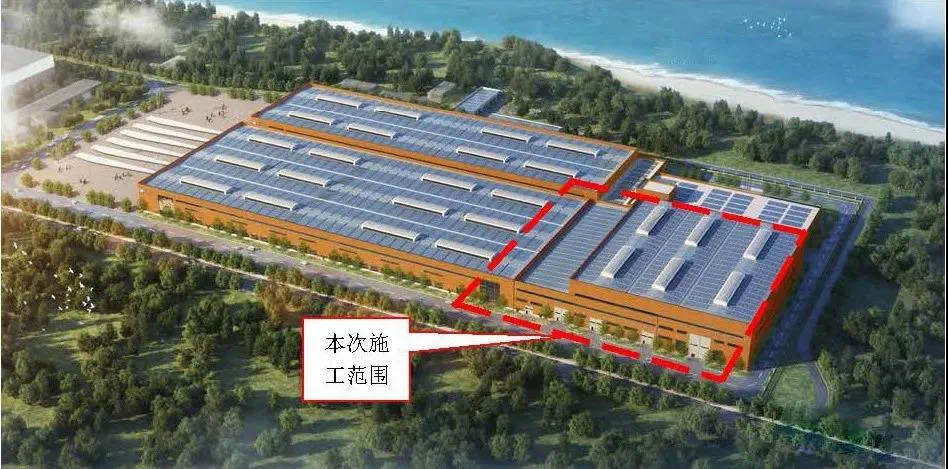 本工程位于廣東省陸豐市碣石鎮(zhèn)后埔村,為單層鋼結構廠房(局部有夾層),廠房軸線長147.4m、寬123m、柱距為12.3m,屋面倒立三角管桁架最大跨度為42m,分段后單節(jié)格構柱最大吊重為37噸,整機廠房的建筑高度為33.95m,葉片倉庫的建筑高度為21.65m,屋面排水坡度5%,占地面積18995.56㎡,總建筑面積約19378.17㎡。屋面采用帶保溫隔熱層的雙層鍍鋁鋅金屬壓型鋼板,墻面采用巖棉夾芯壓型鋼板。