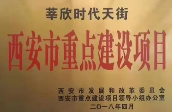 莘欣時(shí)代天街西安市重點(diǎn)建設(shè)項(xiàng)目牌匾