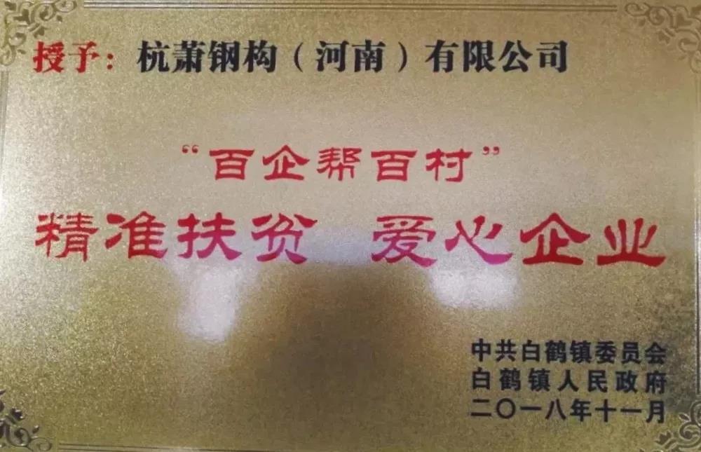 近日,河南省洛陽市孟津縣召開了“2018年孟津縣關心下一代工作暨先進企業(yè)總結表彰大會”,會上對以杭蕭鋼構(河南)有限公司(以下簡稱“河南杭蕭”)為代表的先進愛心企業(yè)進行了表彰及頒獎。