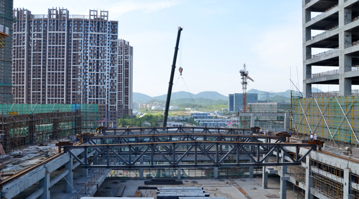 5月30日,由浙江杭蕭鋼構(gòu)股份有限公司承建的青山湖科技城越秀城市綜合體(一期)A1區(qū)酒店裙房宴會廳100噸桁架高空組合滑移成功。