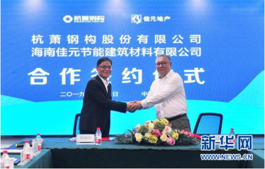 5月8日,杭蕭鋼構(gòu)股份有限公司(簡稱“杭蕭鋼構(gòu)”)與海南佳元房地產(chǎn)開發(fā)有限公司全資子公司——海南佳元節(jié)能建筑材料有限公司(簡稱“佳元節(jié)能”)簽署戰(zhàn)略合作協(xié)議。此次合作將以杭蕭鋼構(gòu)鋼結(jié)構(gòu)住宅體系為依托,以設(shè)計(jì)、制造和施工等產(chǎn)業(yè)鏈核心技術(shù)為支撐,在海南省定安縣、澄邁縣共同打造裝配式鋼結(jié)構(gòu)綠色建筑產(chǎn)業(yè)基地。