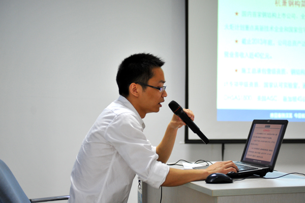 考察組首先聽取了杭蕭鋼構(gòu)助企黨務(wù)干部樓宇對公司關(guān)工委的概況介紹,以及公司在建立企業(yè)關(guān)工委后針對青工特點開展的各項活動。