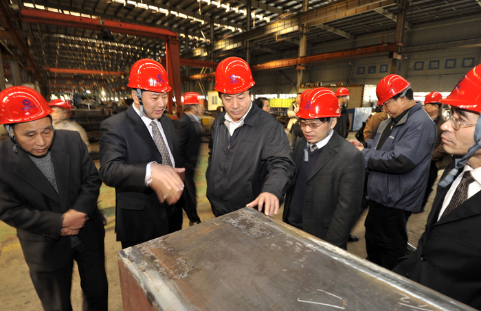 國家住房和城鄉(xiāng)建設(shè)部、省建設(shè)廳的有關(guān)領(lǐng)導和專家在杭蕭鋼構(gòu)生產(chǎn)基地參觀